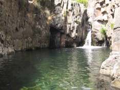 piscina de agua natural en medio de la naturaleza. Al llegar